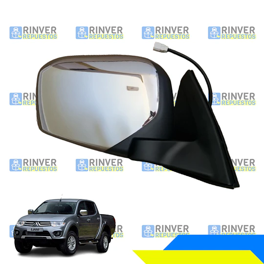 Espejo Derecho RH, Cromado Eléctrico compatible con Mitsubishi L200 2007-2015
